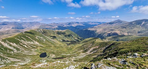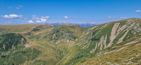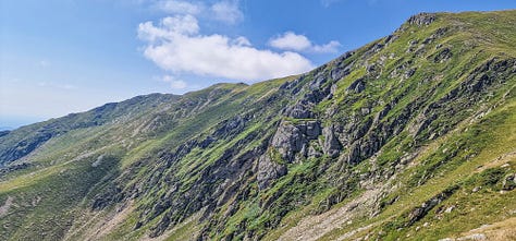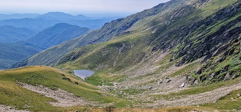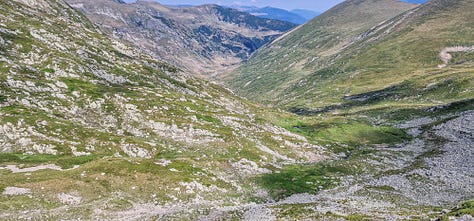 Din acea vale, din locul unde-am pus cortul, am suit din pură curiozitate pe versantul drept geografic printr-o mică șa aninată undeva deasupra văii Galbenei (Berhina) cu potențial acces de coborâre către iezerele sale.