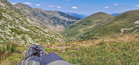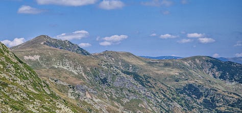Când în sfârșit ne-am urnit din loc, am rebrusat ca locomotiva în timidul Punct Roșu, căci era cea mai lesnicioasă cale către Vârful Godeanu și, mai departe, pe Banda Roșie, deci pe culmea principală.